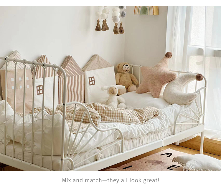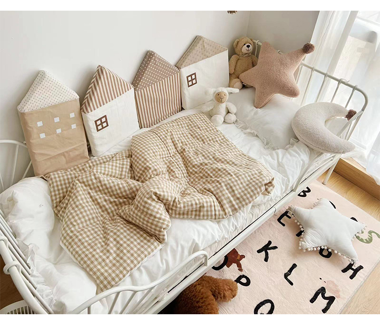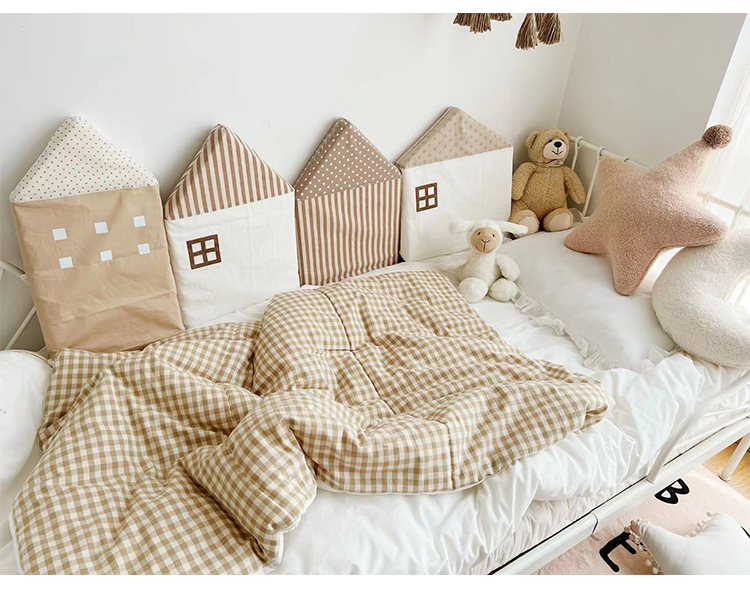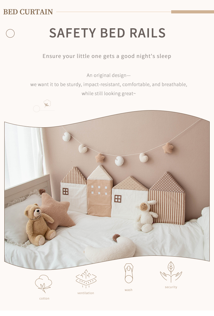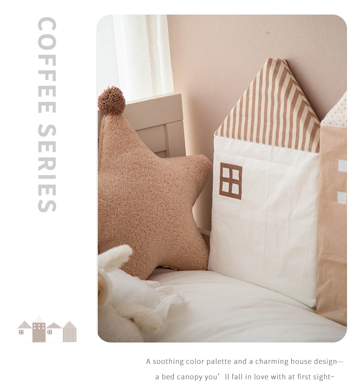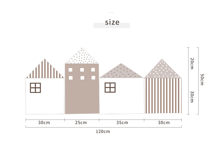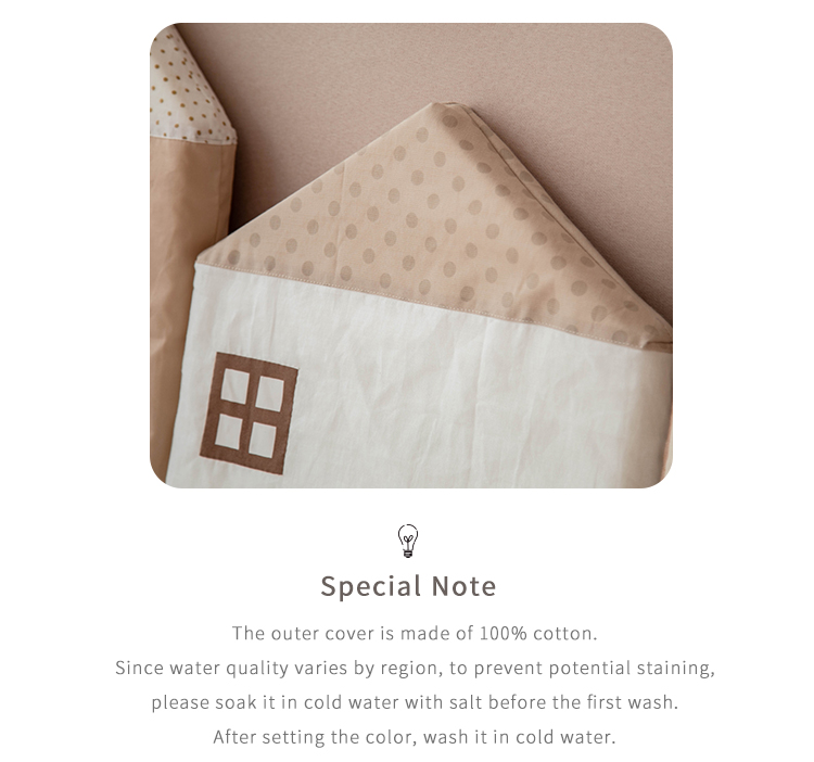 Compact house-shaped design in light beige, complementing any decor. Made from pure cotton fabric with a 5cm thick foam core, offering impact resistance, substantial padding, and breathability for a safe and comfortable experience.