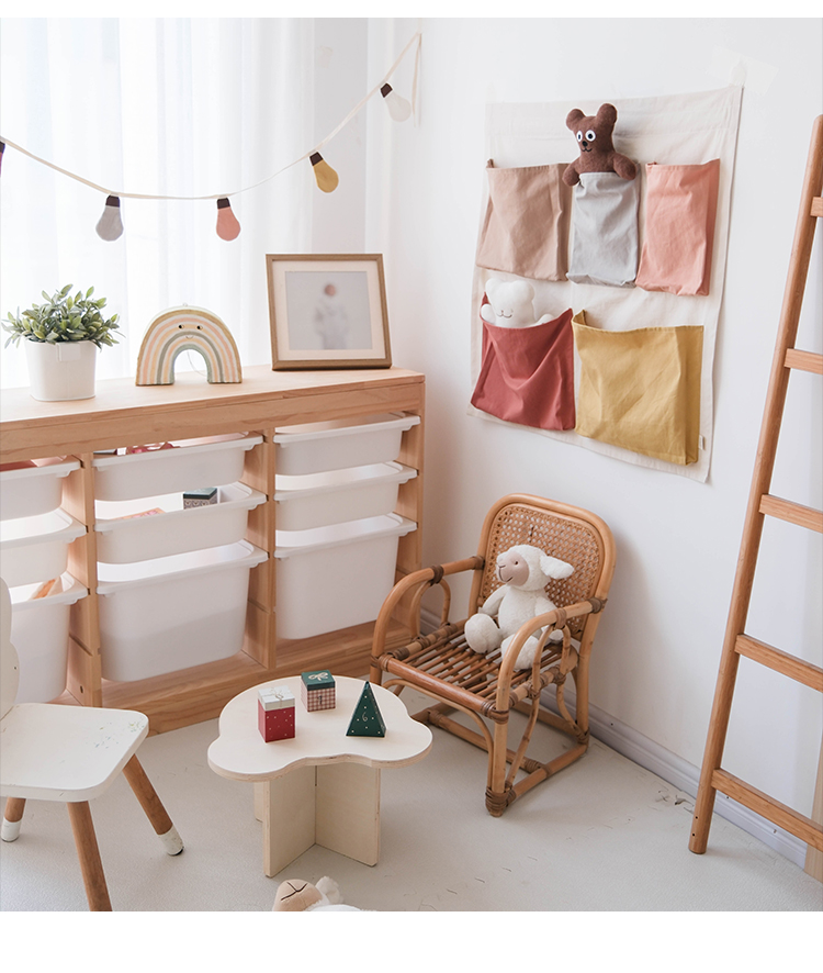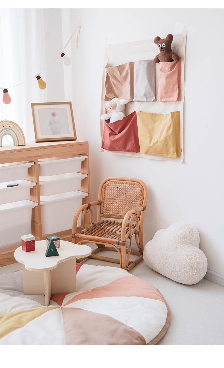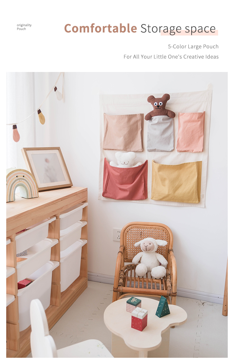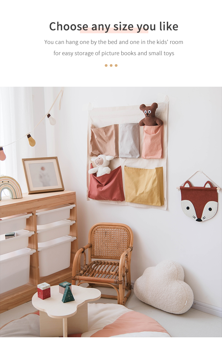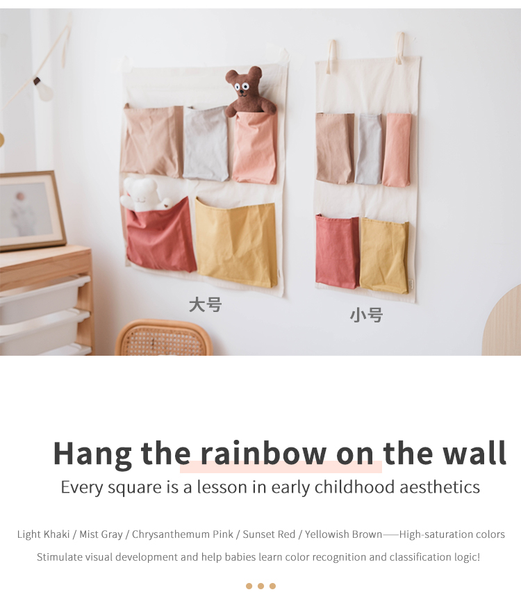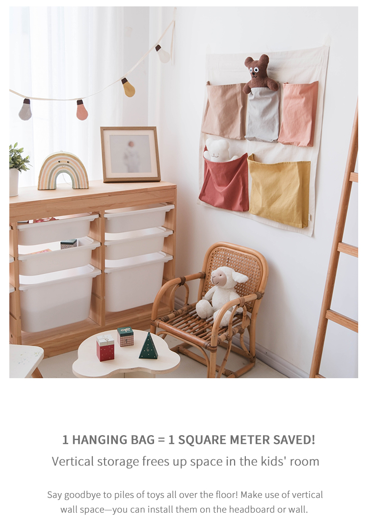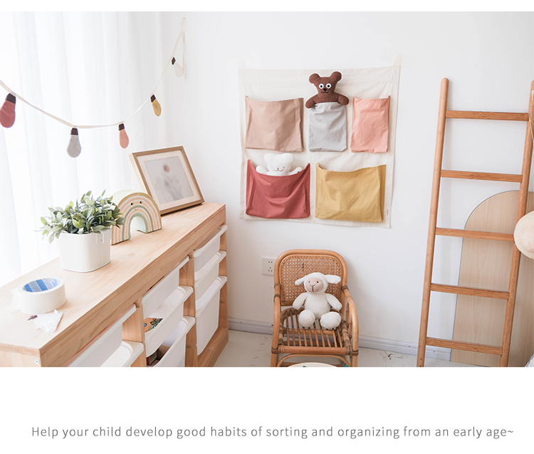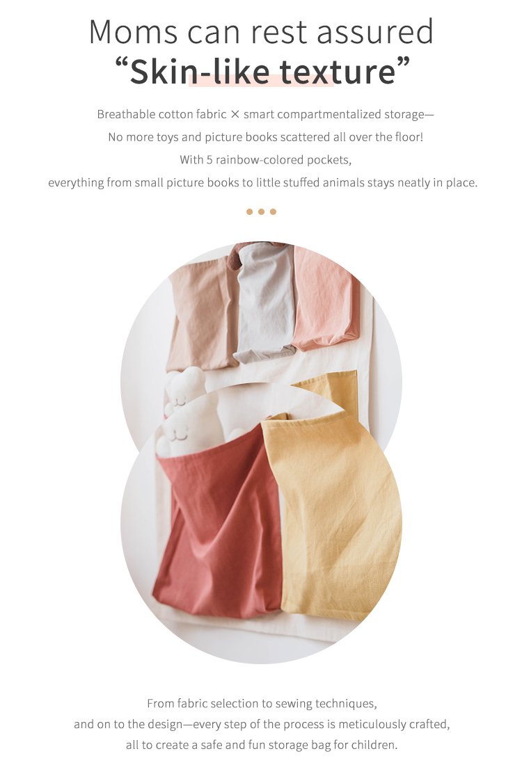 100% cotton fabric, comfortable and eco-friendly. Colorful pockets serve dual purposes: storing small toys while teaching babies color recognition and sorting logic.
