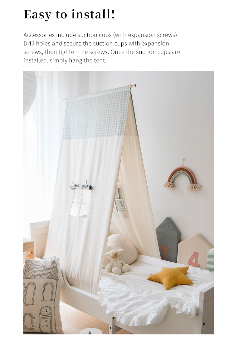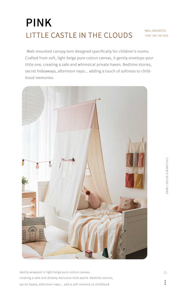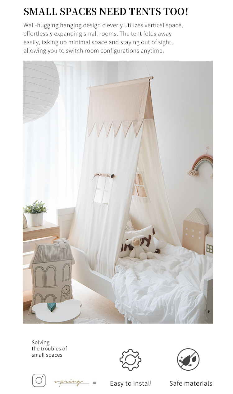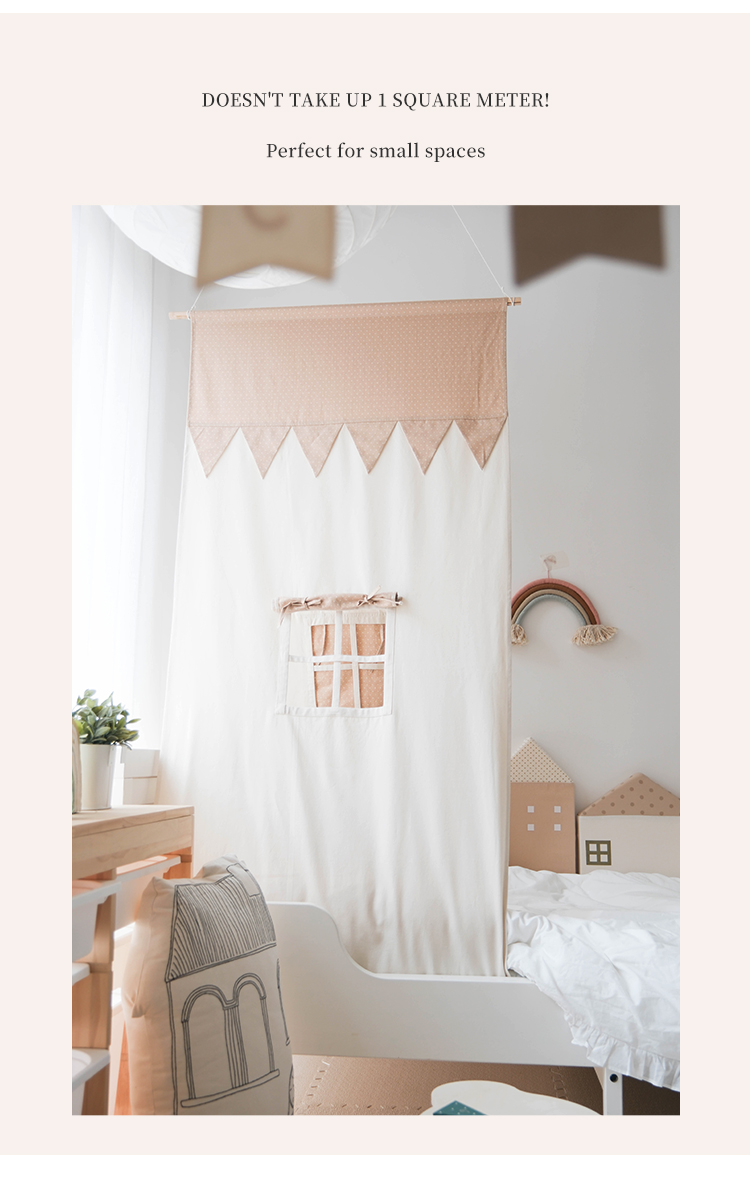Wall-hugging hanging design cleverly utilizes vertical space, creating a compact tent perfect for small rooms. Ideal for both sleeping and play, it comes in four colors for more choices.